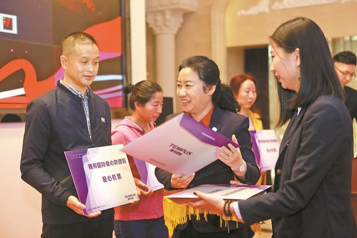 第一批受助家庭从主办方手中接过机票