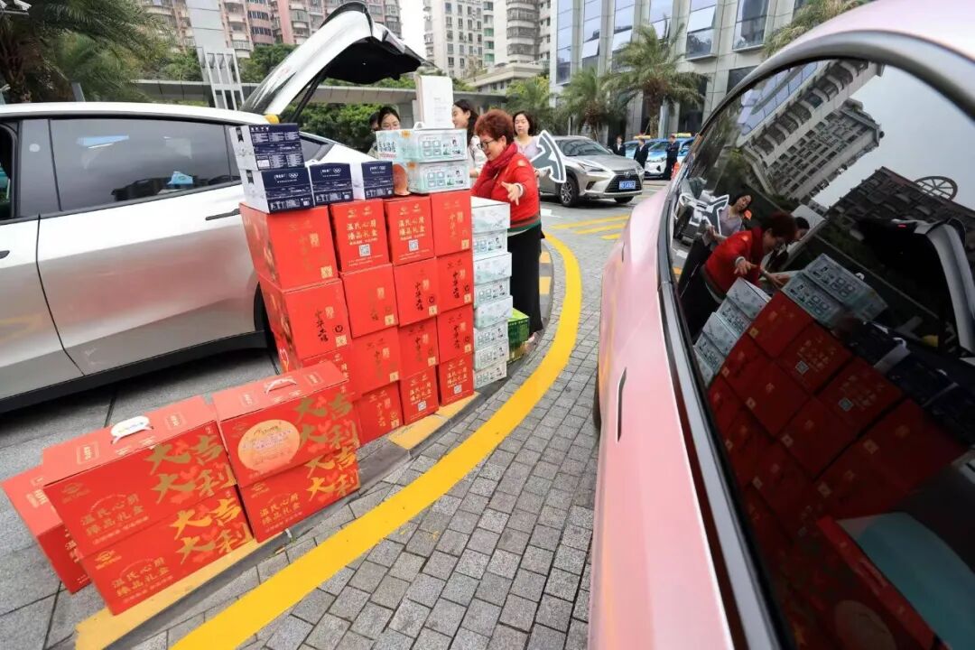 活动现场,两组特斯拉车队的爱心家庭与连续多年参与“爱心年夜饭”派送的爱心司机张翔分工协作,将一份份年夜饭大礼包仔细装车,统一送往位于锦峰大厦的福田区社会工作创新实践基地,再传递到新就业群体代表手中。